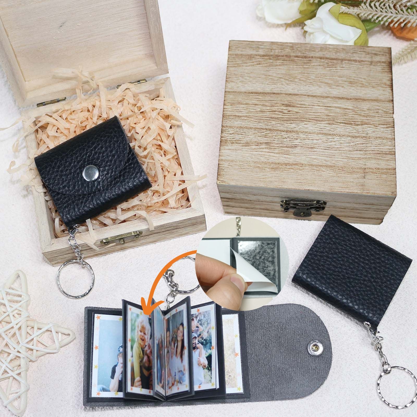 Mini Photo Keychain, DIY Small Custom Leather Memory Photo, Picture Keychains Personalized Album, Mini Cute Key Ring Keychain with Picture Book for Family, Boyfriend, Couples, Dog, Friends
